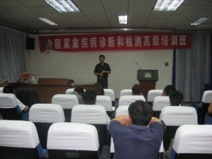 曹金元副教授在讲课 学员在上剖检课